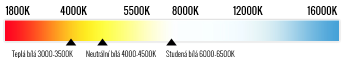 teplota chromatičnosti, jednotka Kelvin /K/. Obecně platí, že čím vyšší je údaj v Kelvinech, tím je barva světla studenější.